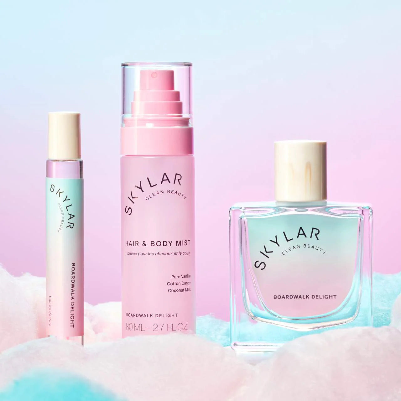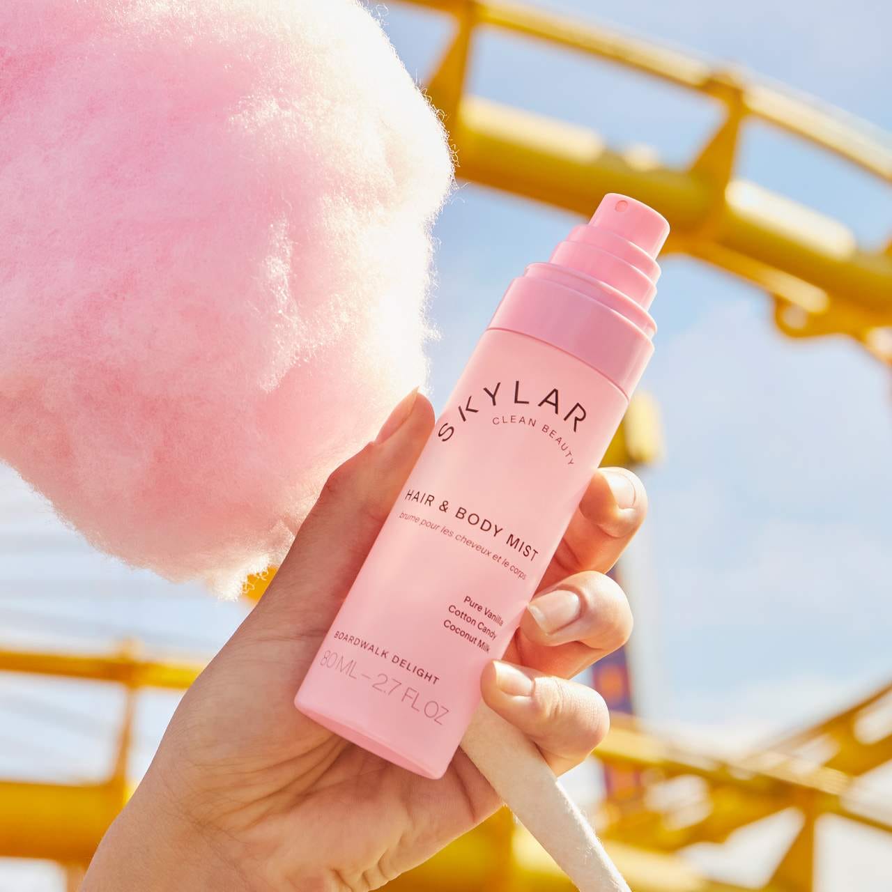 Boardwalk Delight Hair & Body Mist layers cotton candy, coconut milk, and pure vanilla into a soft, airy gourmand blend for hair and skin. Sweet and nostalgic with a creamy finish, it’s perfect for refreshing your scent throughout the day or layering for an extra touch of warmth.